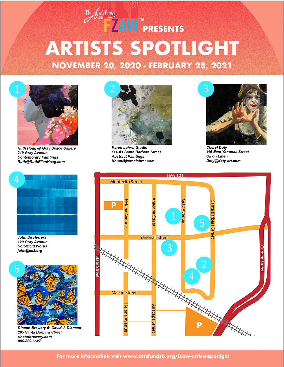 For November - February the Arts Fund will Spotlight four artists and a business representing an artist in the Funk Zone.